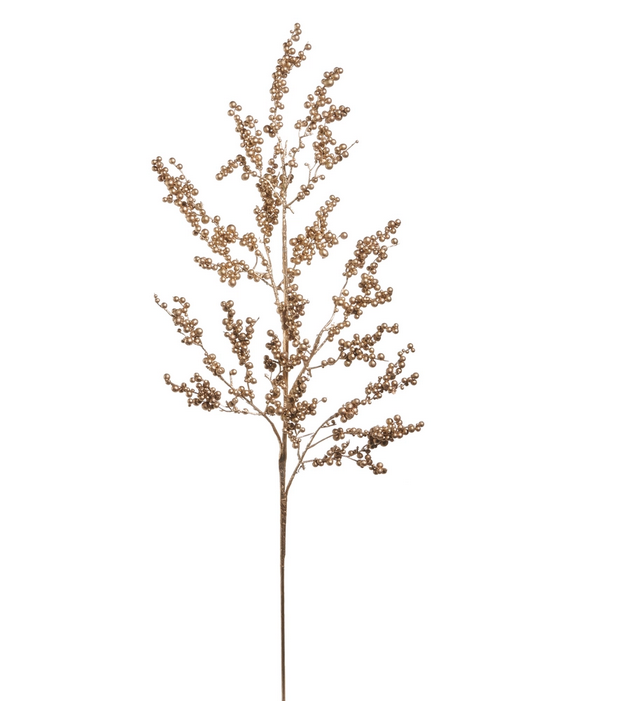 Add a sparkling touch to your floral arrangements or holiday tree with this champagne-colored berry stem. Its subtle shimmer brings elegance and depth, making any display pop with festive charm and playful sophistication. for brightening up your decor with a hint of glam!
