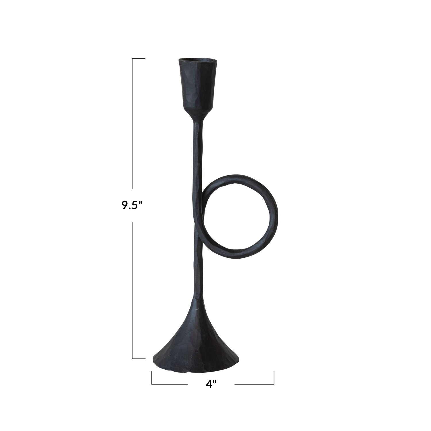 Light up your holidays with our classic hand-forged taper candleholder in the unique shape of a horn. The matte black finish adds a touch of festive elegance to any room. A for any holiday celebration! Available in two sizes